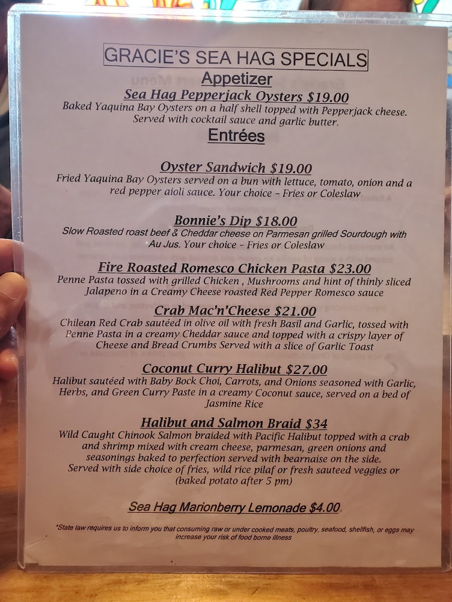 Welcome to Gracie's Sea Hag, a beloved culinary gem located in Depoe Bay, Oregon. Renowned for its famous clam chowder, this dish isn't just a menu item; it's a celebrated recipe that has captured hearts, being voted the best on the Oregon coast. Served fresh daily, it embodies the essence of coastal comfort food.